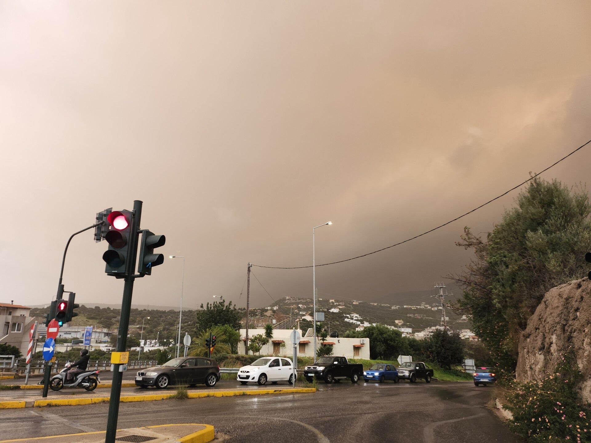 Ierapetra, die südlichste Stadt Kretas, liegt nur 294 Kilometer von der Küste Libyens entfernt. Bei starken Winden ist es durchaus üblich, dass Feinstaub aus der Sahara in sämtliche Himmelsrichtungen geweht wird, bei südlicher Windrichtung eben auch in Richtung Mittelmeer und mittendrin Kreta. Sonst aber tritt das Phänomen meist bei windigem, aber trockenen Wetter auf, das für einen flächendeckenden, aber dünnen Staubfilm auf Dächern, Pflanzen und Autos sorgt. Sobald der Wind dann wieder dreht – was auf Kreta meist nicht lange auf sich warten lässt – klart es meist schnell auf und man kann kurze Zeit später zahlreiche Kreter bei der Autowäsche beobachten.